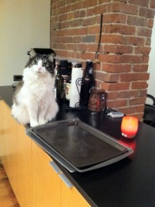 So I came home from work tonight and started unloading the baking sheets/utensils from the dishwasher and notice Jack was up on the counter staring at me…then the Saveway Cookies…at me…then the Saveway Cookies. I am not sure if he knew I wasn’t fully satisfied with the cookies I made the night before or if he indeed had one and decided they tasted like his cat food. Anyway, I threw them out and then decided to make a new batch!