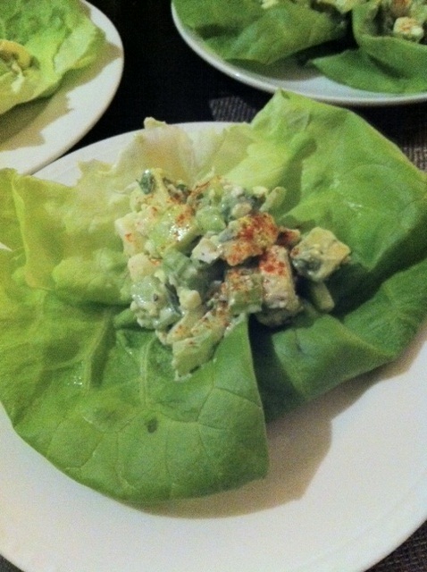 You just add all the ingredients in a bowl (with the exception of the butter lettuce and paprika), toss and then serve on the lettuce leaves with a bit of paprika for coloring. Looking back…we could have taken it to the next level and added some lemon prawns in the mix (small to medium)– good idea for next time!