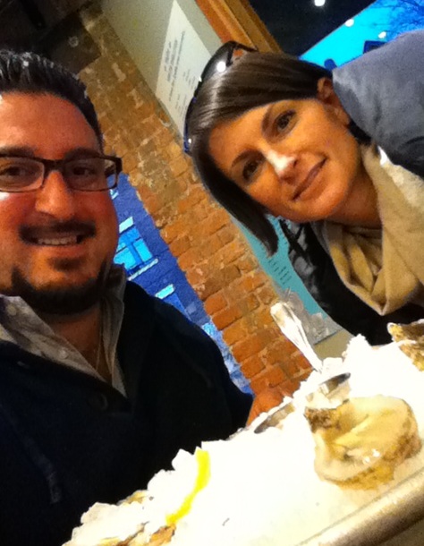 Since picking up A Moveable Feast yesterday I quickly learned that Hemingway loved Paris and Oysters! So when Ash picked me up from work today she said, “what do you want to eat?” I responded, “lets go to Taylor Shellfish on Melrose.” As we drove up to Capital Hill it started snowing (again) and luckily Ashley got a parking spot right in front (if you don’t know Ashley…she always gets the best parking spots). We walked right into Taylor on Melrose and loved the half market/ half casual dining experience. Right away we saw the bins of oysters with circulating water, LARGE live dungeness crabs, live lobsters, fresh/live clams and a lot of other little things from the Sea.