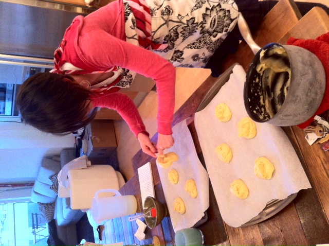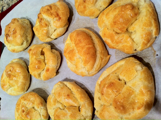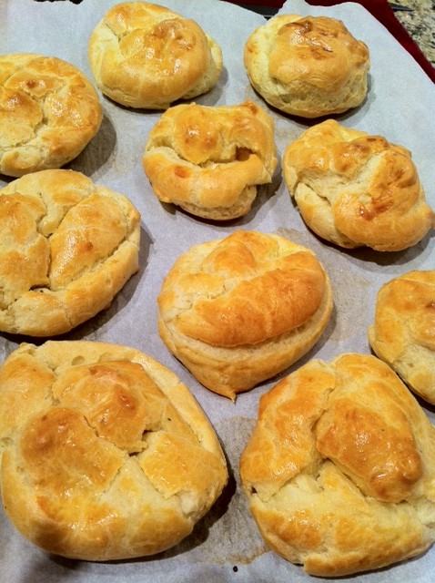 Drop by 1/4 cupfuls about 3″ apart onto the baking sheets…approximately 9-10 puffs.