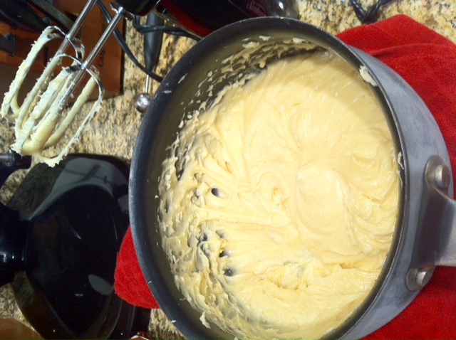 Add the eggs, one at a time and use a mixer (yes, using a hand-mixer with a saucepan is OK, just don’t go crazy) beating well after each addition.