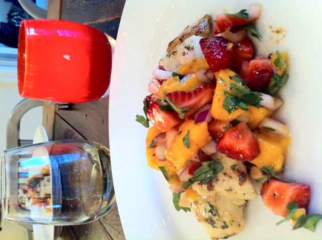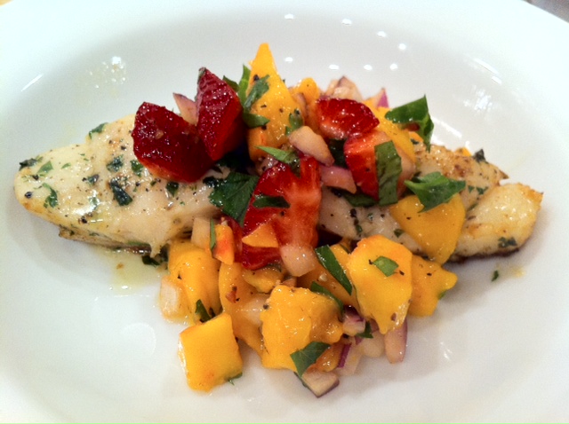 Butter poached Wild Alaskan Halibut with a Strawberry Mango Chutney