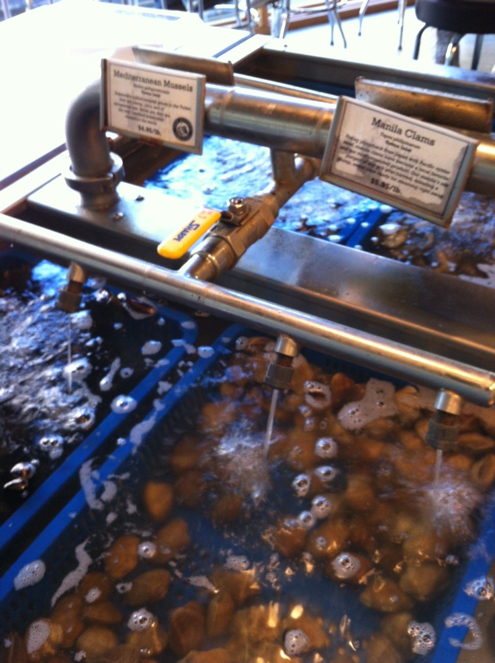 The last meal before Ash gets home tomorrow…Seafood pasta. Lately we have not been eating pasta which is normally a pretty regular thing. As we have prepared other starches in pastas place. So as my tennis game ended I drove up to the Queen Anne Trader Joe’s (my favorite) and bought the only pasta sauce that is good (Bolognese). Next I drove across town to Taylor Shellfish on Melrose and bought about 1 pound of clams and 1 pound of mussels.