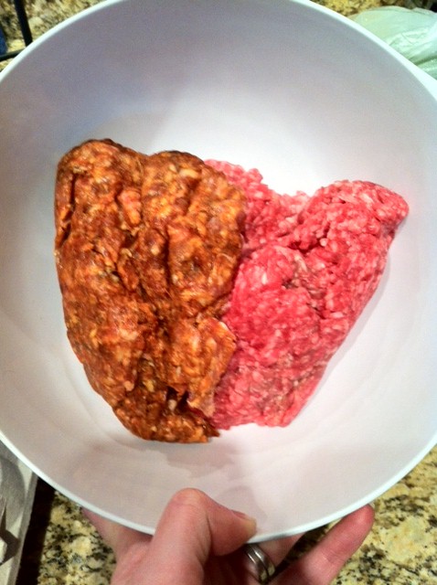 I was in charge of the meatballs so I kind of played it by ear in terms of my ingredients and they turned out super juicy and flavorful. I did use lamb, which next time I think I will omit– I just can’t force myself to like the flavor….might be my palate or the fact that I raised market lamb/sheep in high school for FFA. Not that I am sensitive about eating a “pet” … I just know how gross they are :0). Anyway, back to the meatballs.