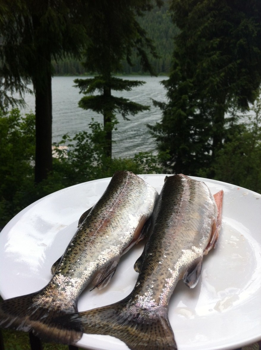 Sure we ate burgers, hotdogs, burritos and french fries; but the real meal was trout. I really want to share our location where we have been going for the past 4 years so I will just say its in easten Washington outside of Leavenworth.