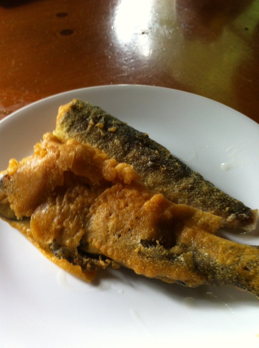 Besides gutting the fish (thanks Daniel), frying was pretty easy. With Daniel’s help we prepared the fish two ways. 1) Flour and Corn meal and 2) beer battered.