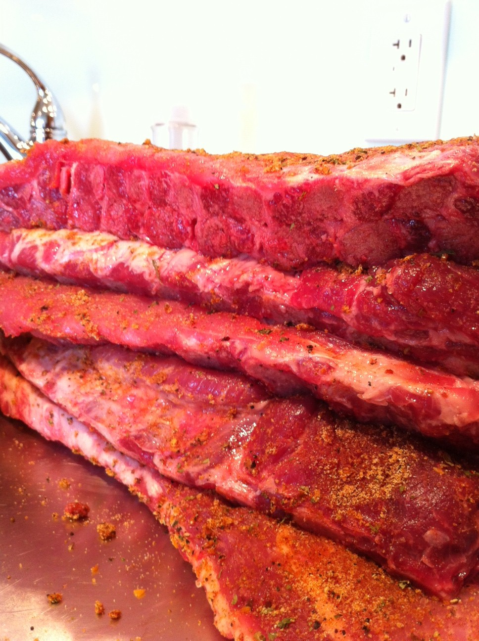 On Saturday Ash and I drove to Ballard for Bastille Day. On the way back downtown we stopped at a couple places to buy baby back ribs.