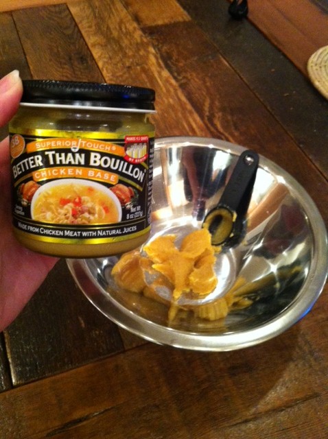 - 4 tsp Better than Bouillon, Chicken (*mix with 1 cup of hot potato water to dissolve)