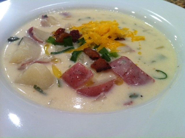 Potato soup has been on my bucket list for some time now so tonight was the perfect night to make it- Dark. Cold. Windy. Rainy….AND Mark went to help his brother, Dan, move, so I had the kitchen all to myself!
