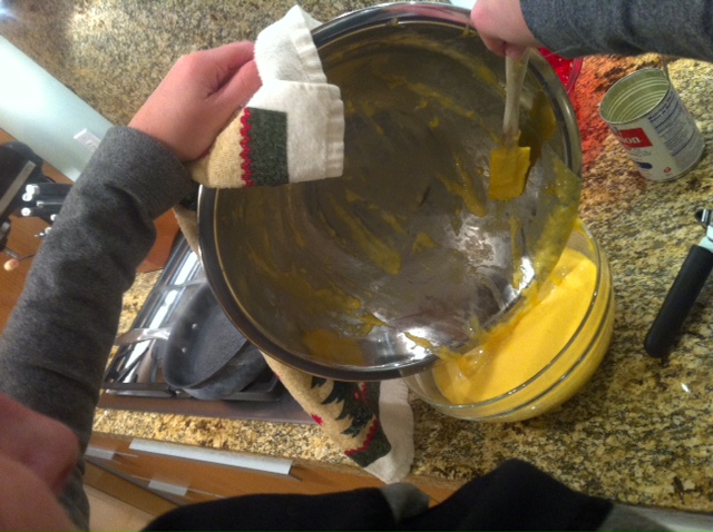 Transfer to a bowl and immediately add the pimentos