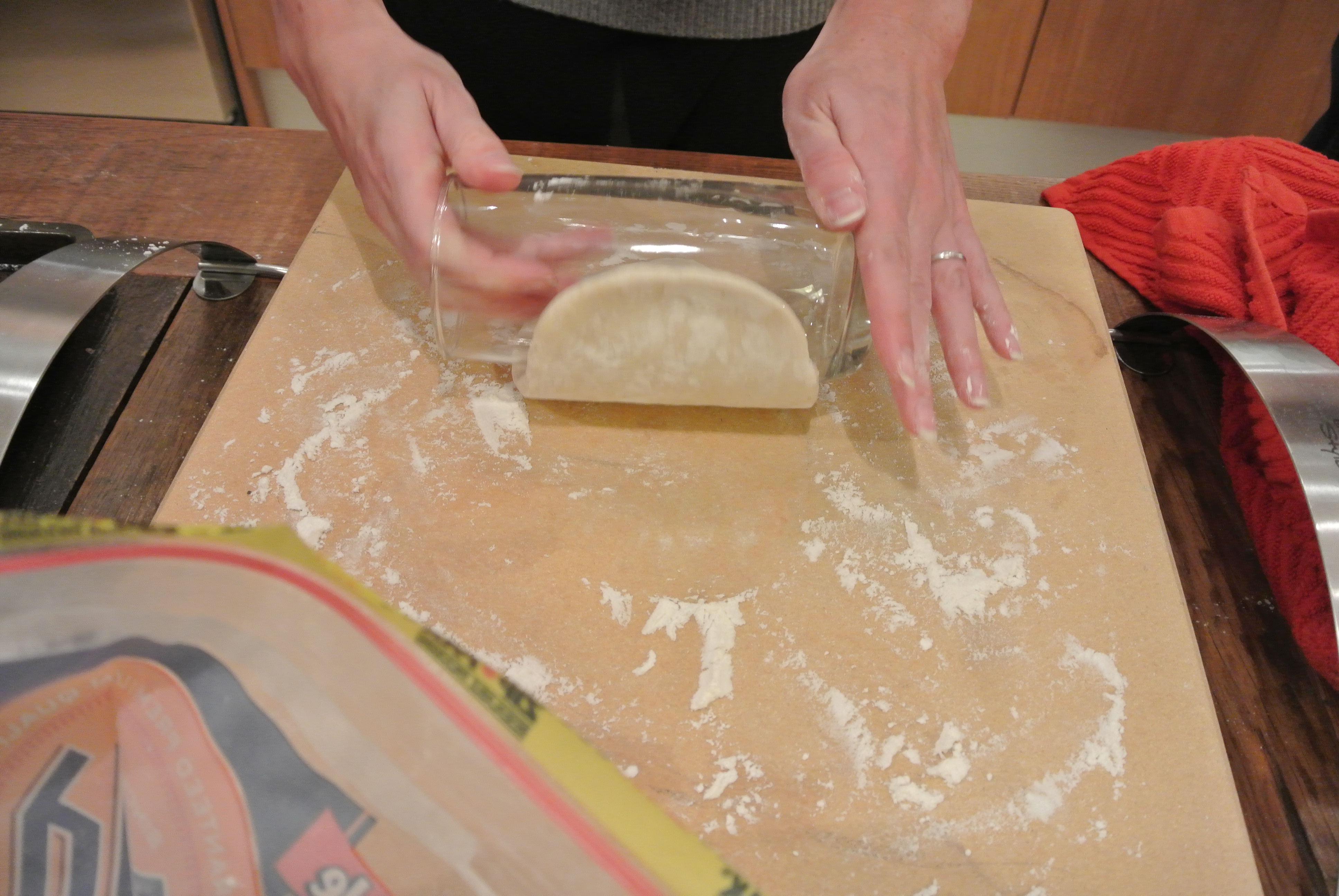 After the dough balls have risen, roll two to three balls in the shape of an oval on a floured surface and place them on a cookie sheet/baking stone.